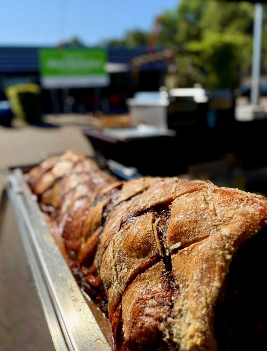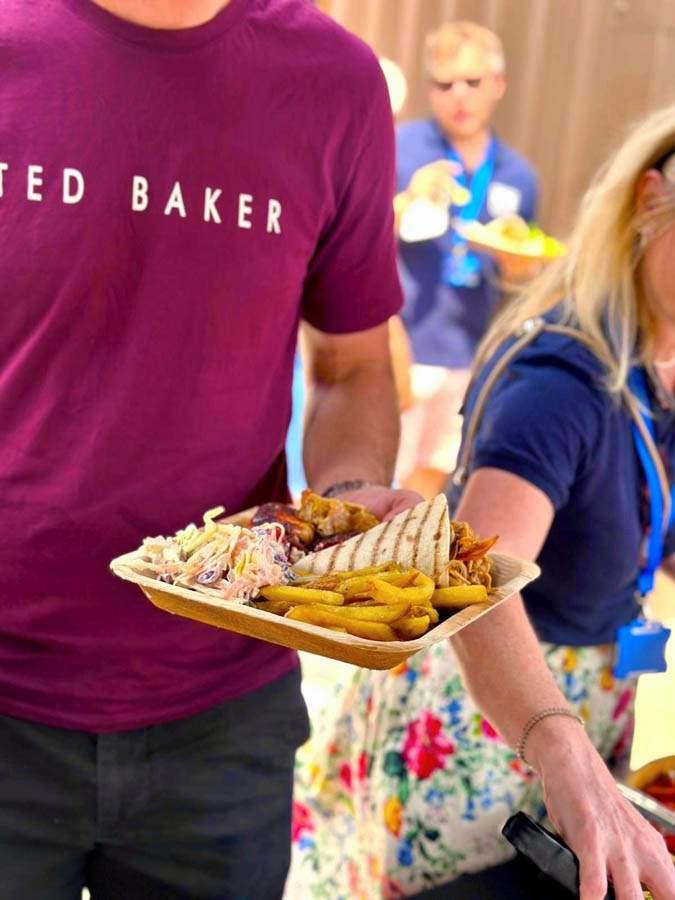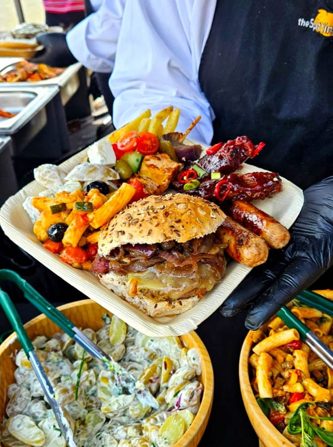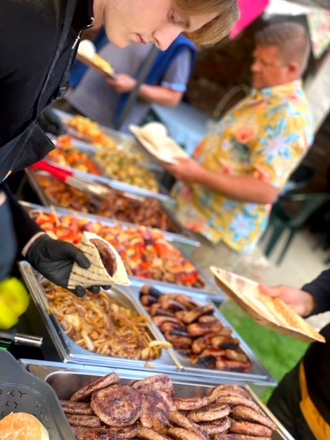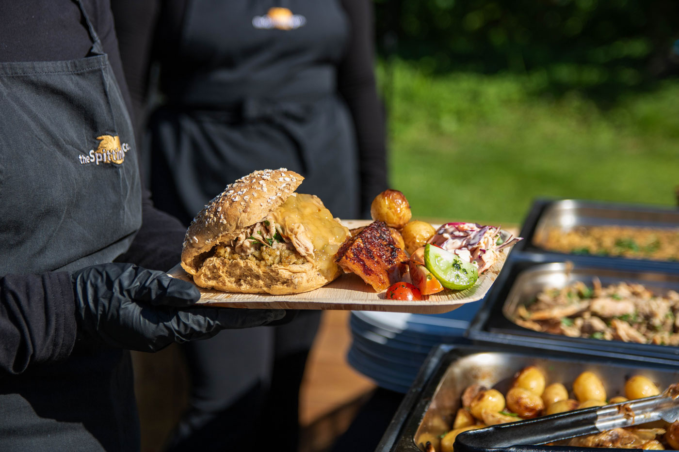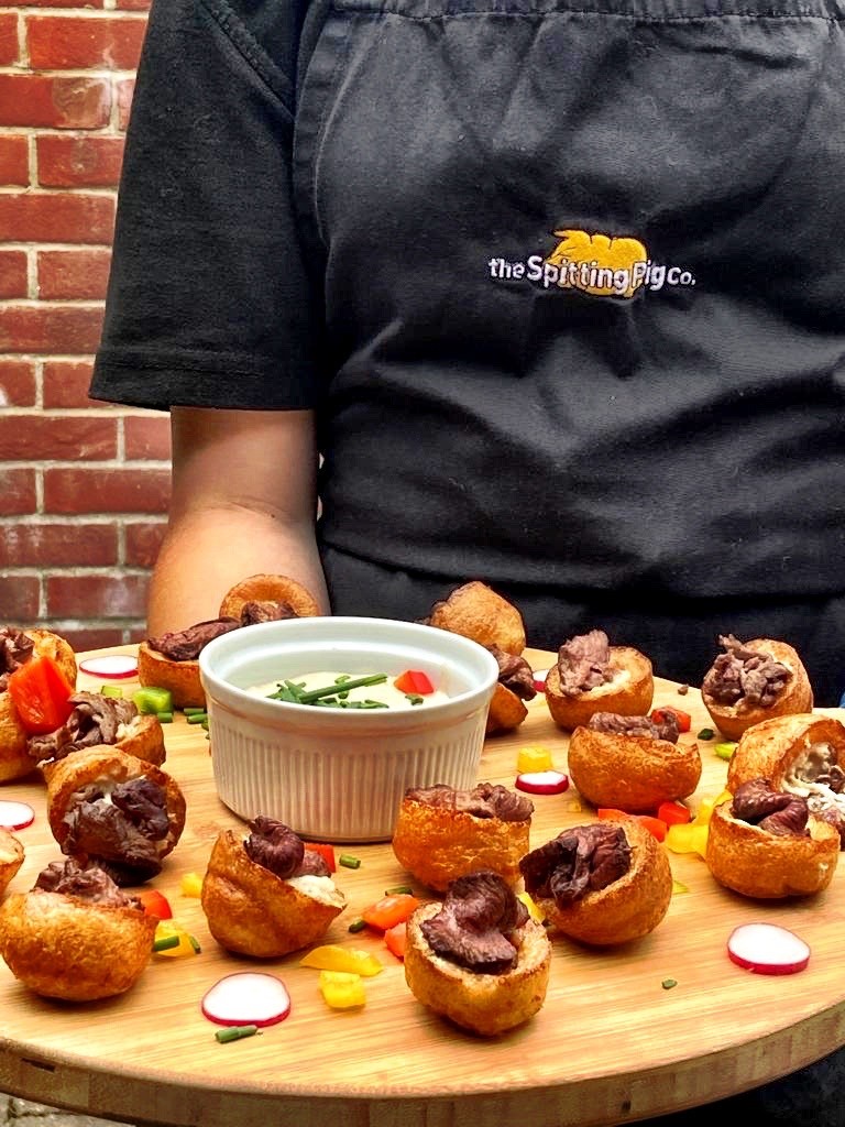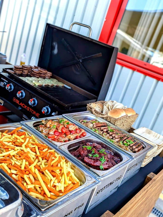 To be honest, I don’t know where to start! Firstly, the customer service we received from booking them, all the way through to the actual event was really great, helpful with all my questions and were in contact to ensure all was going to plan. They turned up when expected and were really friendly and just got on with setting up happily. We ordered a hog roast with stuffing and a vegan option of halloumi and veg skewers, with sweet potato fries and salad/coleslaw as a side for 100 people … it was absolutely incredible, I cannot even begin to describe how good, everyone kept coming up to me saying how amazing it was. The staff happily left us the remainder of the food that wasn’t consumed and this was gone pretty much within the hour after the staff left the event as people just couldn’t get enough of it! On top of that, the staff were so great, happily chatting away to us and overall just had a really good vibe! I will happily be recommending Spitting Pig to anyone that needs catering!