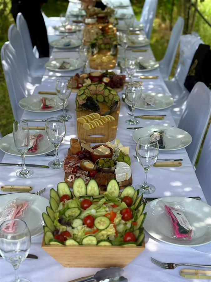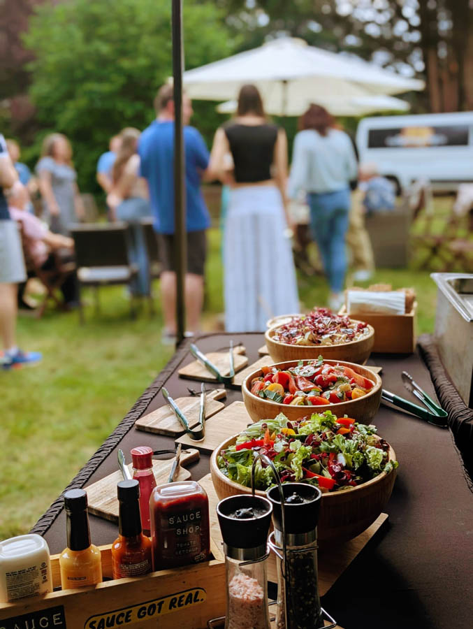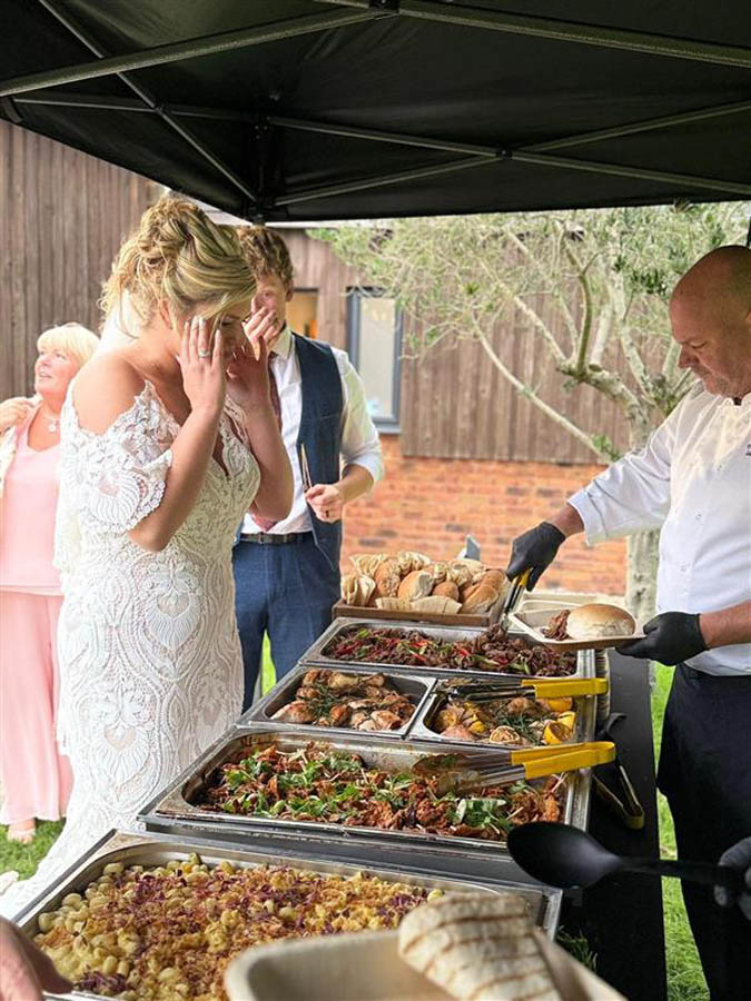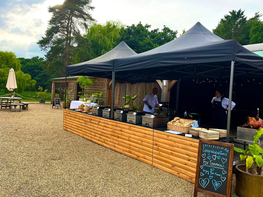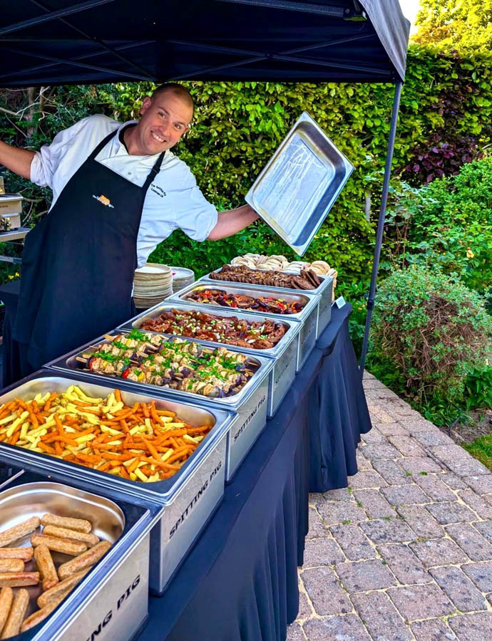 Our pre-wedding hog roast dinner at Euridge Manor, catered by Spitting Pig, was a great addition to our wedding weekend festivities! The food was incredible—perfectly cooked, flavorful, and plentiful. There was so much left over that we were able to enjoy it as a post-wedding midnight snack the following day, which was a real treat.