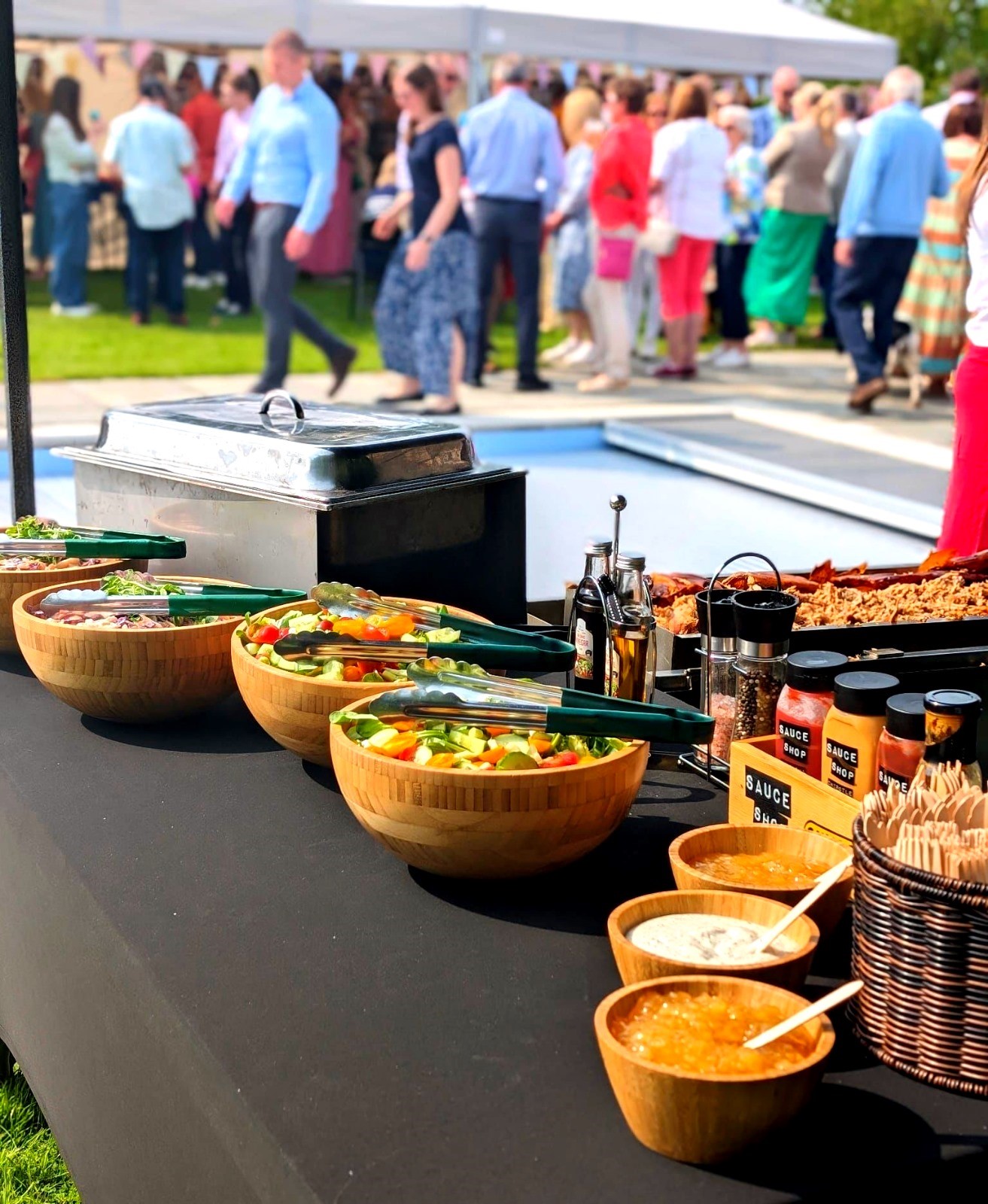 We were worried that for a smart black tie event that they would not be the right thing, but they were wonderful. They were invariably professional, well organised, accommodating and efficient people with which to deal. The pork itself was juicy and really delicious – cooked for hours – they had woken at 4am to have it ready for 8:30pm but the crackling was what attracted the highest praise. The sides and salads were all great too – and they served my birthday cake with their usual efficiency. They seemed to be a really well run and friendly team of people too, if only more businesses were like them.